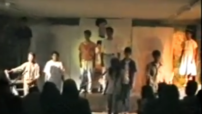 أبرياء ولكن؛ أول إبداع مسرحي غنائي في بلادنا. المسرحية من تمثيل فرقة السنابل بيت جن (1990).