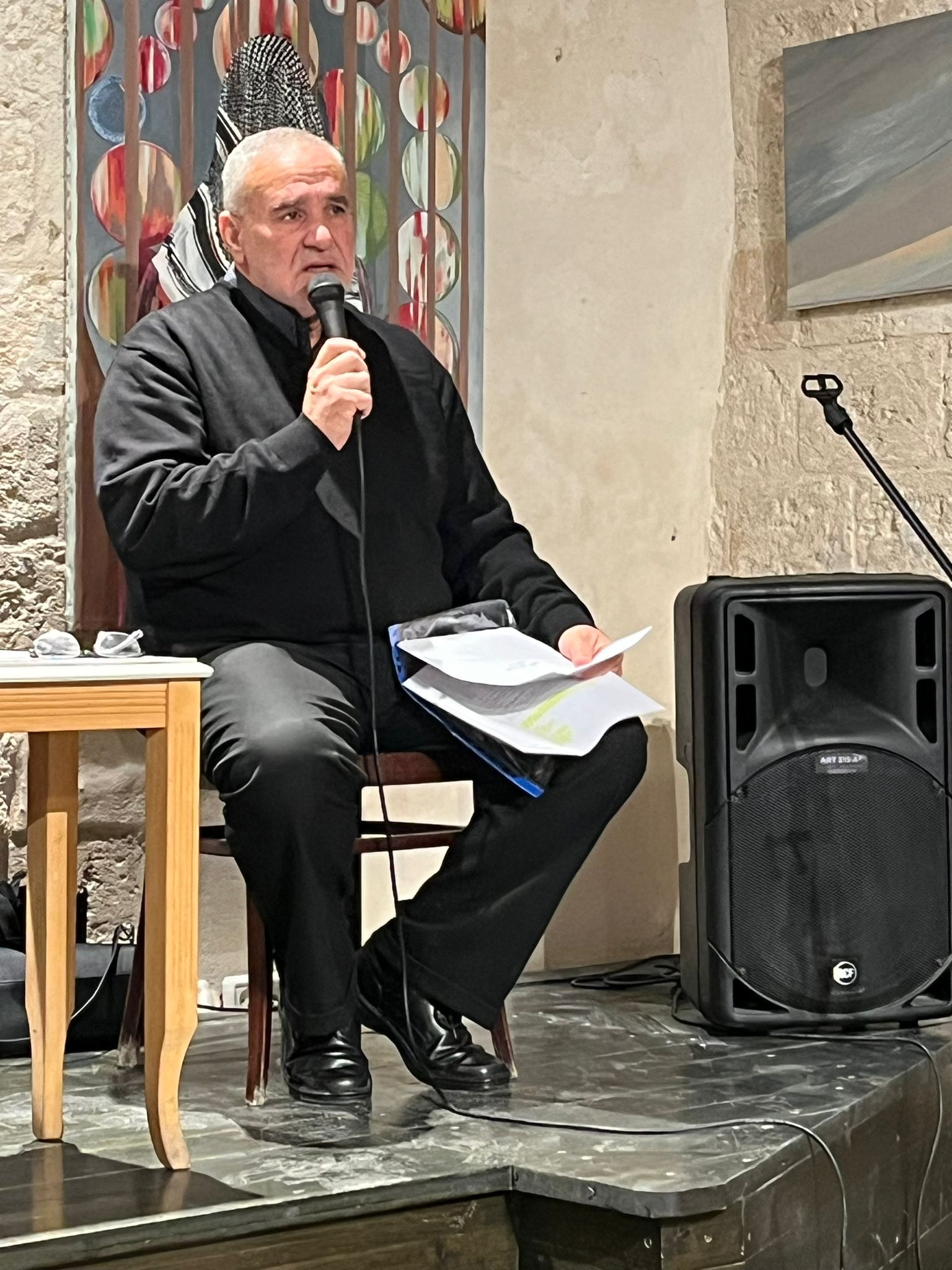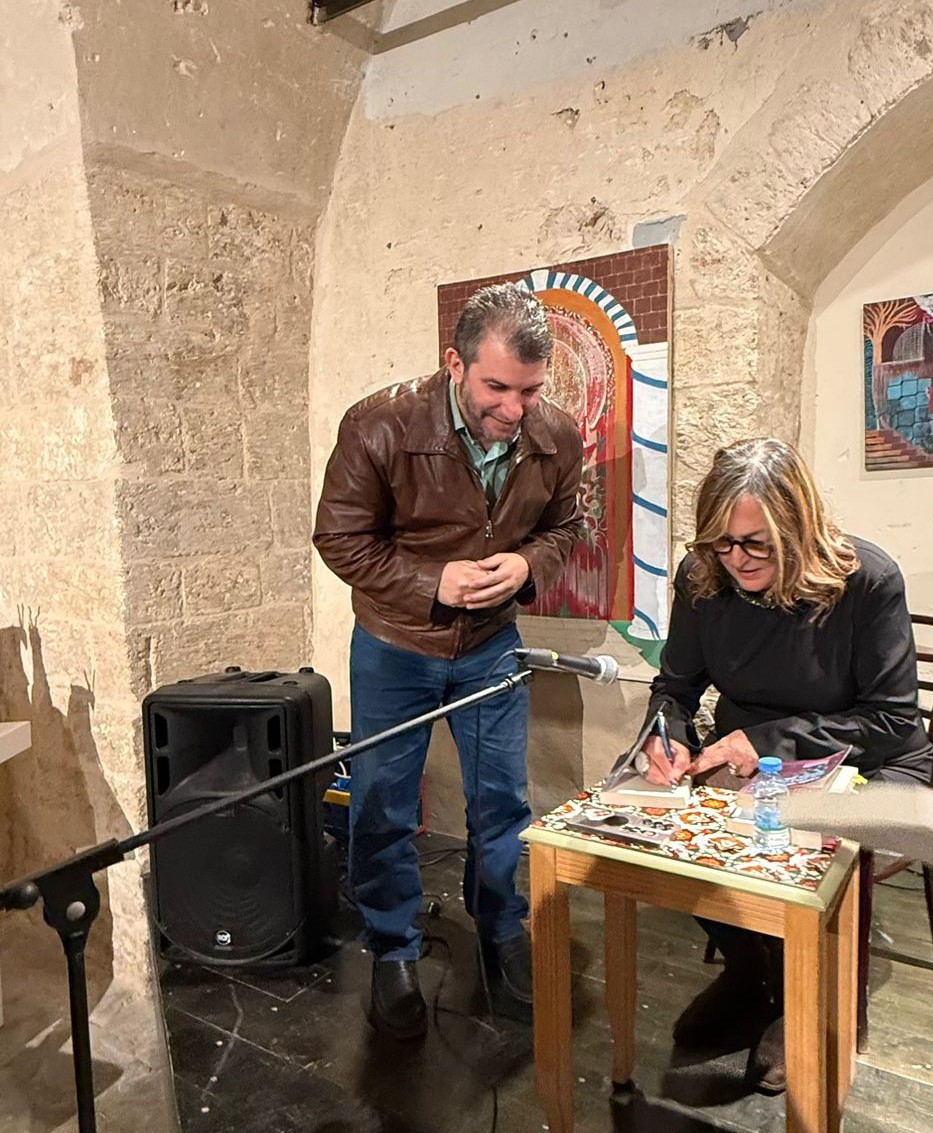 بدعوة من الاتّحاد العام للكتّاب الفلسطينيّين- الكرمل 48 ومكتبة مي وزيادة، عُقد يوم الجمعة 5.12.2025 في سوق النّاصرة العريق، على منصّة المكتبة، ندوة ثقافيّة احتفاءً بإصدار الشاعرة الفلسطينيّة إيناس خورشيد فاهوم ديوانيها، "ضُمَّةٌ من زعتر برِّيّ في جملة مفيدة" و "الرجل الرمادي". والشاعرة من مواليد قرية ترشيحا الجليليّة تقيم حاليًا في النّاصرة، وهي متخصصة بالهندسة المعماريّة وتخطيط المدن، وتشغل حاليًا منصب مهندسة بلديّة كفر قرع.