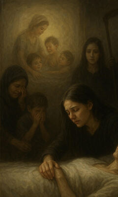 "أماه، ألم تقولي إنك ستبقين حتى ترين أحفادك يكبرون؟ لماذا تركتِ الوعد معلقًا؟"