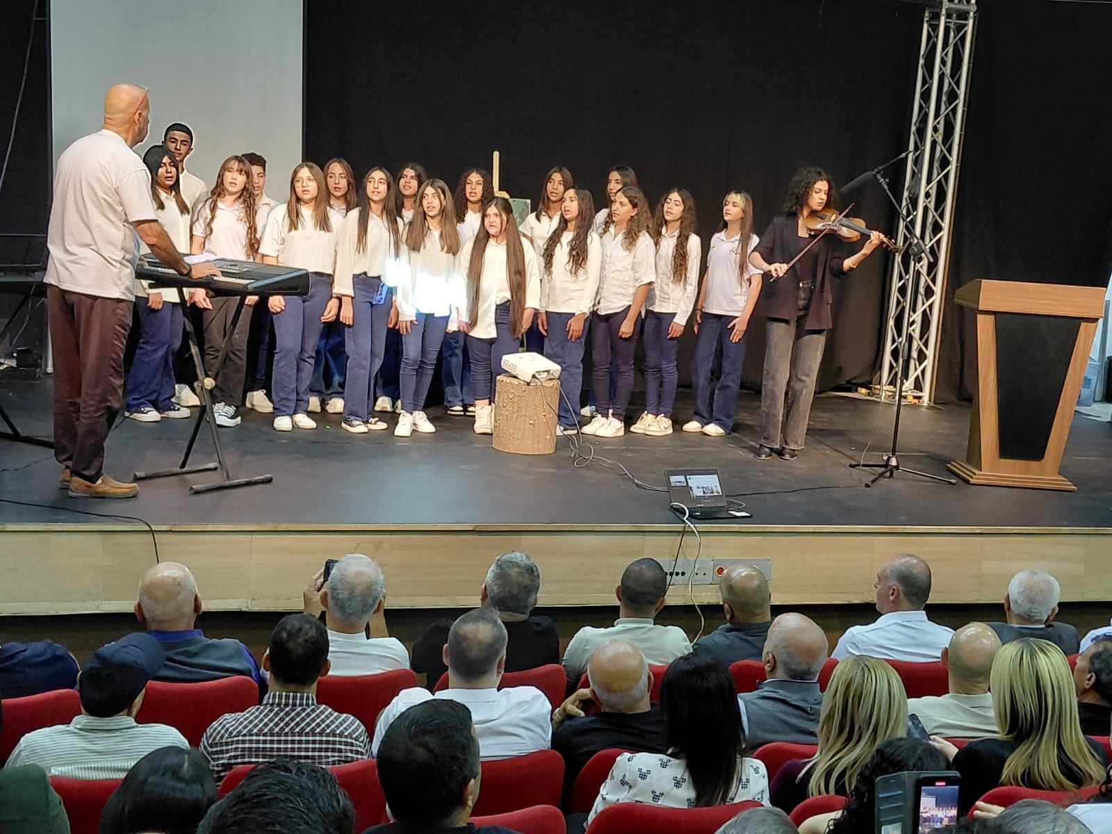 بعدها كانت استراحة فنية مع جوقة"المدرسة الشاملة أ على اسم الشيخ صالح خنيفس"، بقيادة الأستاذ رياض شهاب، التي قدمت أنشودتين من نظم الشاعر ماجد عليان وتلحين رياض شهاب، وهما نشيدي"المدرسة الشاملة أ"و"مدرسة العين الابتدائية"، وقامت طالبة الصف العاشر مديحة أبو حمود بعزف لحن"النهر الخالد"على آلة الكمان.