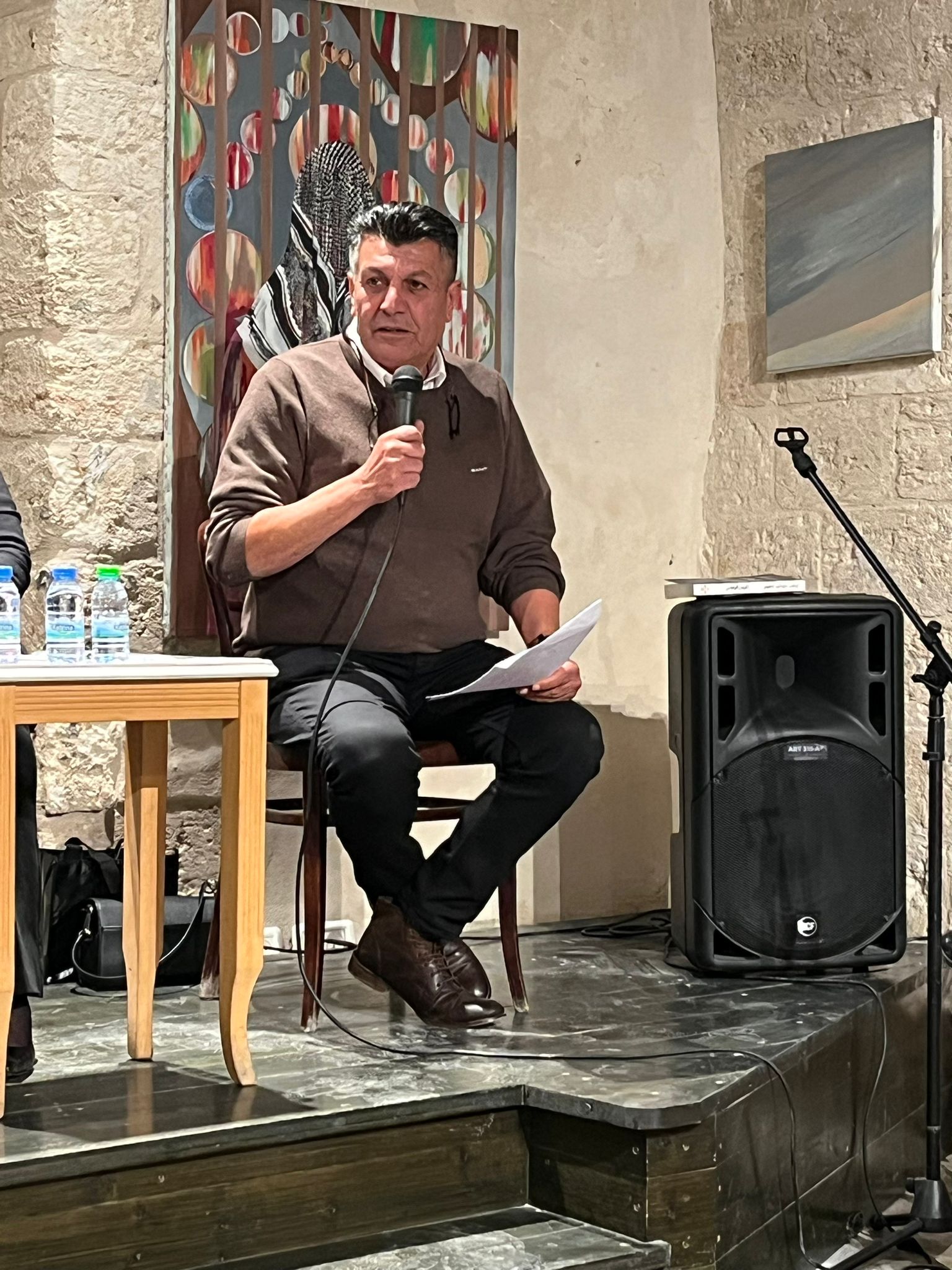 بدعوة من الاتّحاد العام للكتّاب الفلسطينيّين- الكرمل 48 ومكتبة مي وزيادة، عُقد يوم الجمعة 5.12.2025 في سوق النّاصرة العريق، على منصّة المكتبة، ندوة ثقافيّة احتفاءً بإصدار الشاعرة الفلسطينيّة إيناس خورشيد فاهوم ديوانيها، "ضُمَّةٌ من زعتر برِّيّ في جملة مفيدة" و "الرجل الرمادي". والشاعرة من مواليد قرية ترشيحا الجليليّة تقيم حاليًا في النّاصرة، وهي متخصصة بالهندسة المعماريّة وتخطيط المدن، وتشغل حاليًا منصب مهندسة بلديّة كفر قرع.
