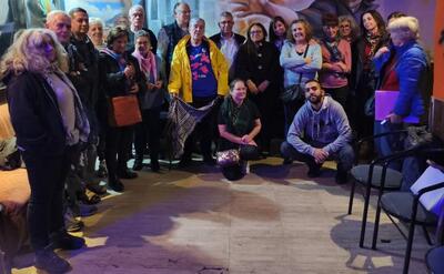 وكانت مشاركات للحضور، منها مداخلة قصيرة للفنان موسى نضال الخطيب، ومداخلة للإسبانية خواني رشماوي التي سبق وإن اعتقلت نتيجة عملها في إحدى الجمعيات في الأراضي الفلسطينية المحتلة لأكثر من ثلاثين عاماً، وتناولت في حديثها معاناة الأسرى، وكنتُ قد التقيت بها في سجن الدامون بالكرمل عدّة مرات، وتعرفت عليها وعلى ظروف اعتقالها.