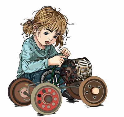 بريشتها السّاحرة، وألوانها الجميلة، تدخل قلبَ الطّفل، وعالمه، حيث تجعل الشّخصيَّاتِ تتحرَّك، وتقفز، وتضحك، وتحزن، فتضفي على إبداع الكاتب إبداعًا جديدًا، وجميلًا.