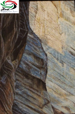 ومع ذلك، لا يوجد دليل تاريخي على قدسية المكان أو ارتباطه بعقيدة دينية، بل هو منظر طبيعي خلاب بكتل صخرية ضخمة نحتتها التعرية الجوية في قلب الصحراء، وهي تمتد على مساحات شاسعة. وقد أبرزت الفنانة في لوحتها انعكاس الشمس الذهبية على الصخور مع الظل الداكن وآثار التعرية الطبيعية، ومع انعكاس الشمس عليها سواء بالشروق أو الغروب نرى مشهدا ساحرا خلابا.