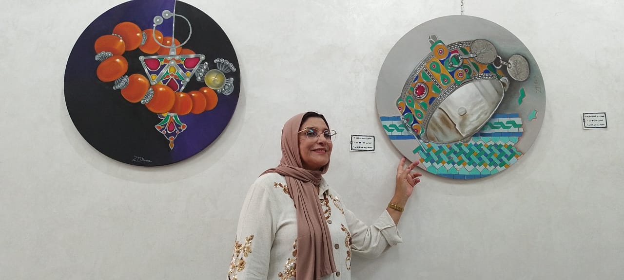 هكذا احتفت الفنانة بمختلف أشكال التراث والفنون والسحر الفني المغربي العريق، كما كرمت في لوحاتها الهوية الثقافية المغربية، من خلال المكون الامازيغي، وما يجبل به من ثقافة عالمة، وفنون آسرة، وعادات وتقاليد، وأدوات زنية قل نظيرها.